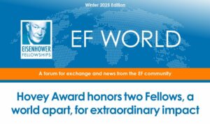 Around the world, Eisenhower Fellows are rolling up their sleeves and coming together to fight the coronavirus pandemic. We are hearing from them regularly in our EF virtual family chats, online discussions that allow us to check in with our